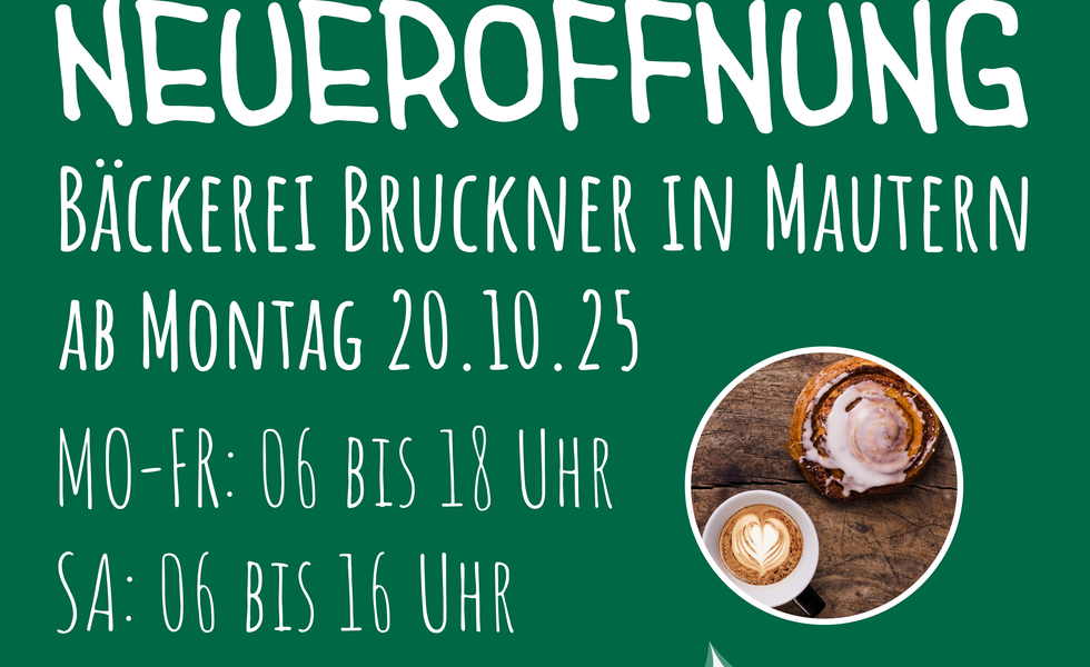 Wir freuen uns schon, am 20. Oktober unsere neue Filiale in Mautern zu eröffnen. Ihr dürft gespannt sein auf köstliches Brot, Mehlspeisen und auf hausgemachtes Eis.